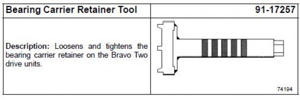Description: Loosens and tightens the bearing carrier retainer on the Bravo Two drive units.