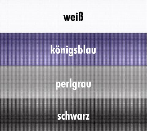 - Farbe: königsblau, perlgrau, weiß und schwarz (weitere Farben auf Anfrage)